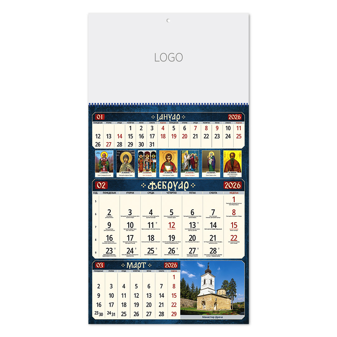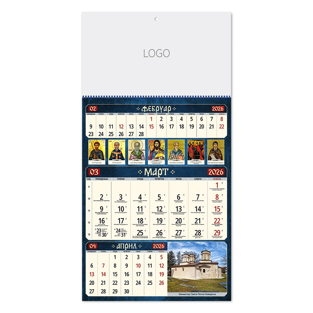 PRAVOSLAVNI 59, zidni kalendar: 12 listova, tromesečni, jednodelni