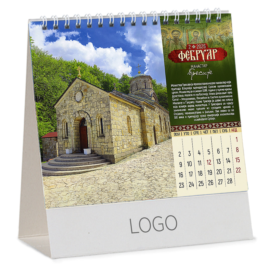 PRAVOSLAVNI MANASTIRI 13, stoni kalendar: 15 listova, mesečni